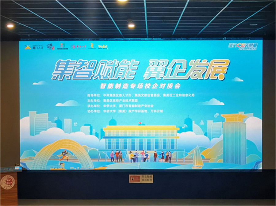 此次活動由中共集美區(qū)委人才辦、集美文教區(qū)管委會、集美區(qū)工業(yè)和信息化局指導,集美區(qū)高校產業(yè)技術聯(lián)盟主辦,華僑大學、廈門市智能制造產業(yè)協(xié)會承辦,華僑大學(集美)政產學研基地、萬科云城協(xié)辦。來自聯(lián)盟成員高校領導、教師代表和廈門智能制造領域70余家企業(yè)代表近120人參加。